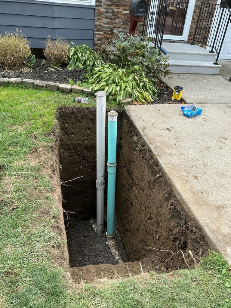Cellino Plumbing, Heating, Cooling & Electric completed a full house trap replacement for a single-family home in Hamburg, NY. The project addressed ongoing sewer issues caused by a failing cast iron trap and improper pitch in the original line.