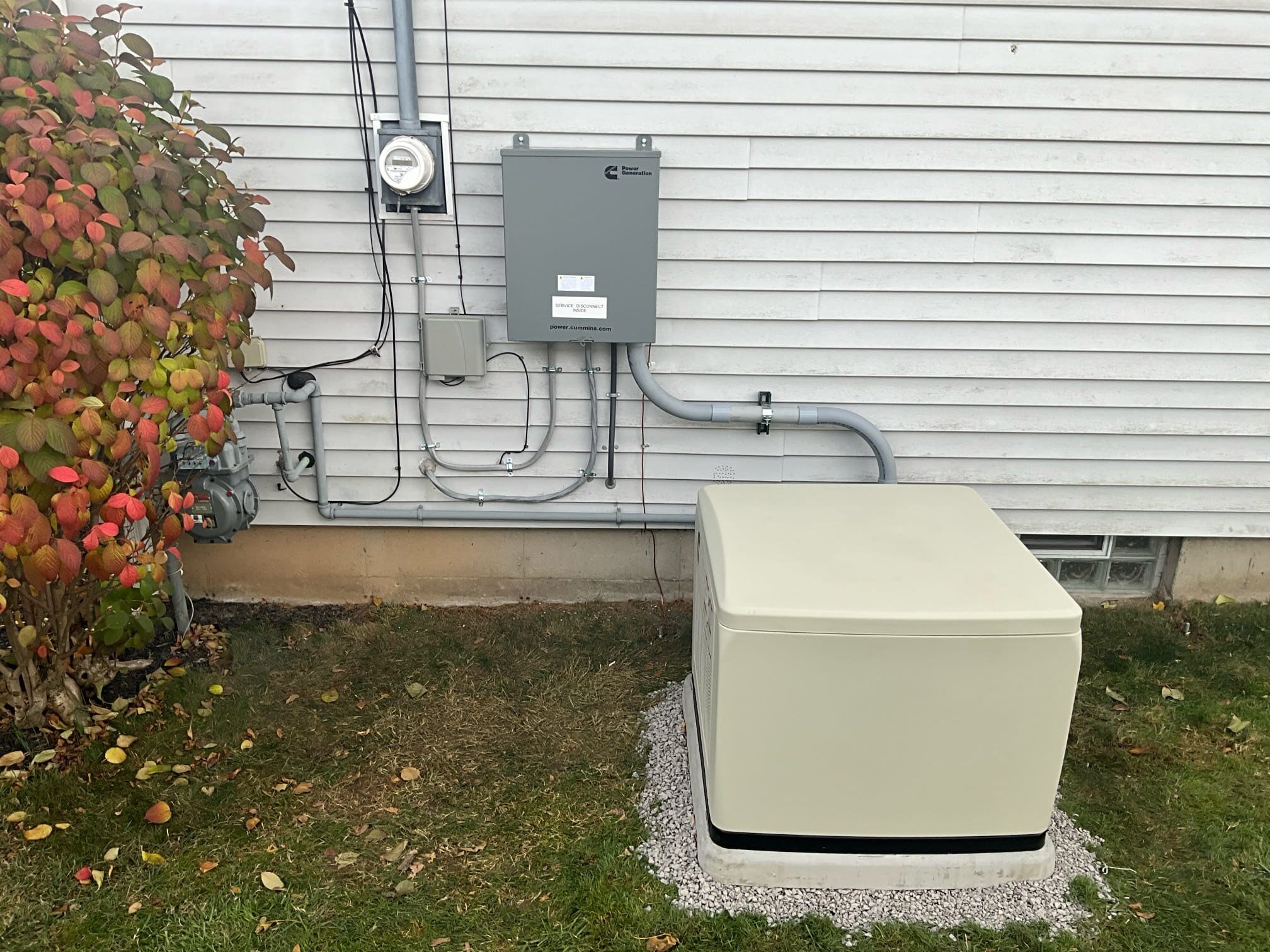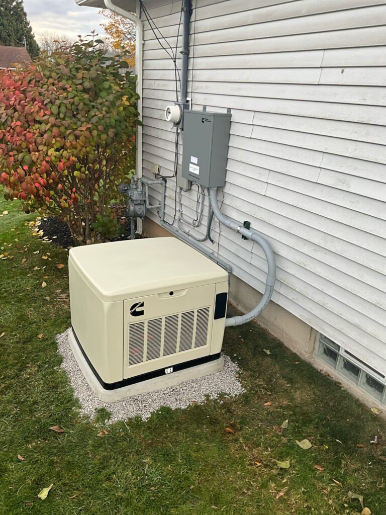 The finished installation provides the homeowner with a fully functional standby generator system that ensures uninterrupted power during outages. The generator, transfer switch, and updated electrical panel operate seamlessly together, while the properly installed and grounded gas line adds safety and reliability. The homeowner can now enjoy peace of mind knowing their home is equipped with a dependable backup power solution ready for use year-round.